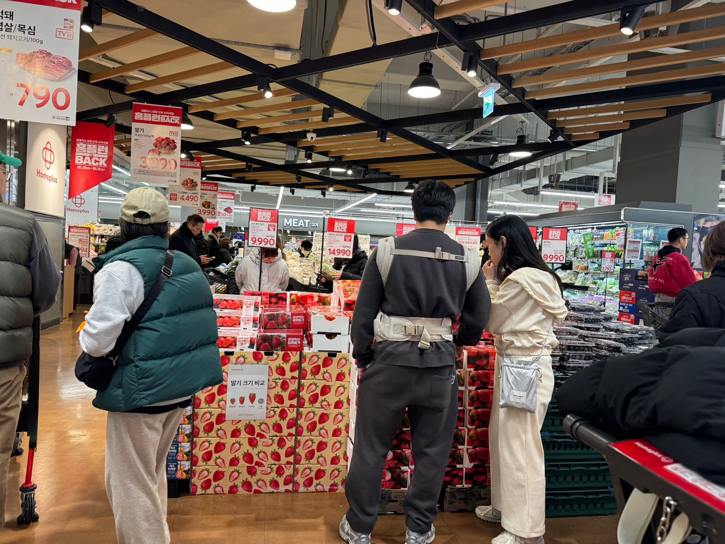 - 계산대 대기 시간이 너무 길었음! 사람이 정말 많아서 결제하는 데만 20분 이상 걸렸어요. 주말이라 그런지 장바구니 가득 담아온 사람들이 많았고, 계산대 줄이 길어지는 바람에 기다리는 시간이 꽤 길었습니다..